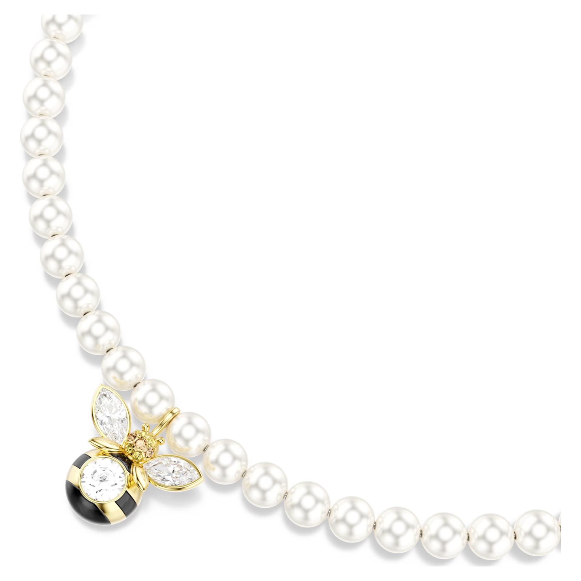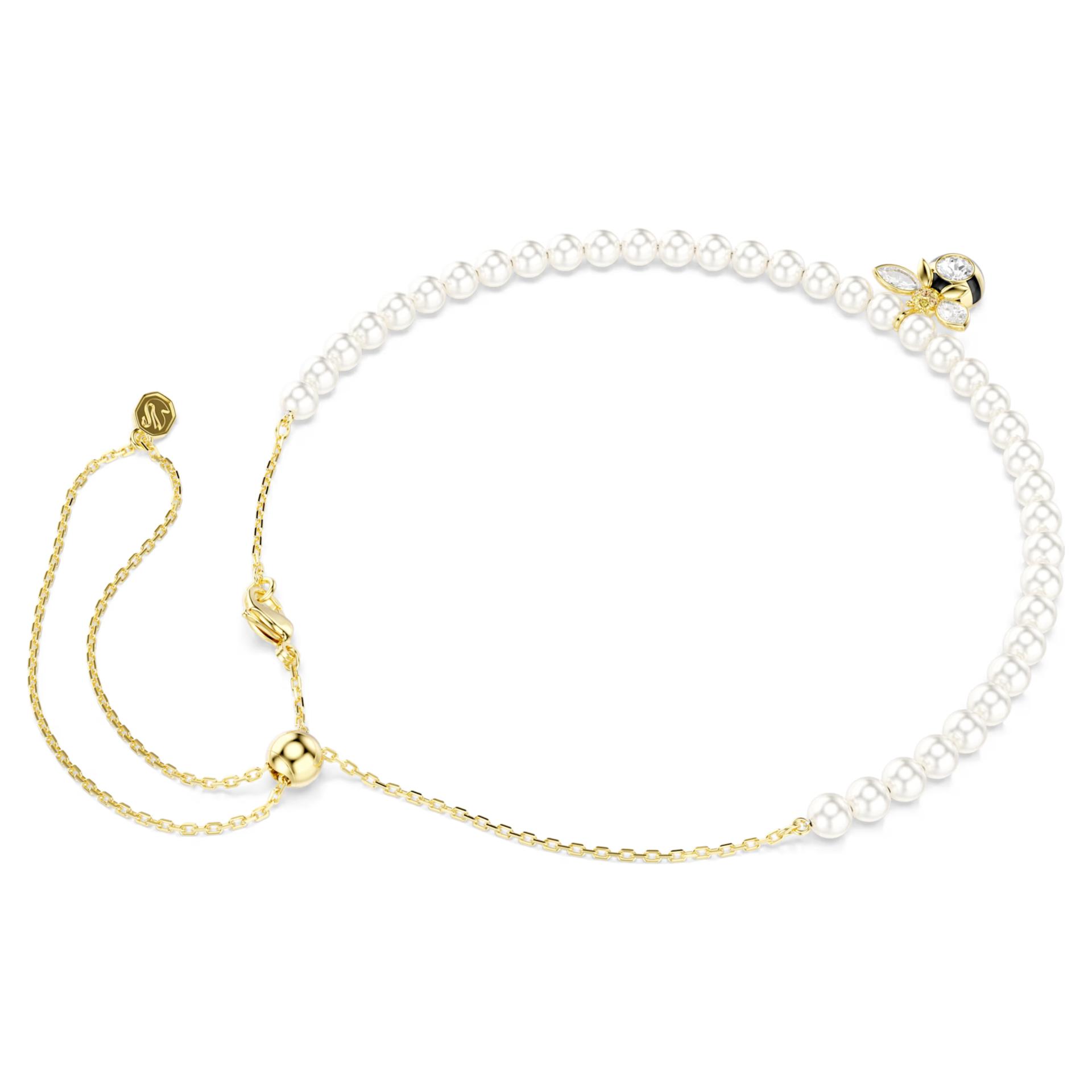 Swarovski Idyllia: Biserni čoker sa motivom pčele Slatka i luksuzna ogrlica koja kombinuje klasične bele Swarovski bisere sa razigranim motivom pčele. Detaljno izrađen centralni motiv krase crne i žute pruge i blistavi kristali, unoseći duh prirode u vaš stil.
