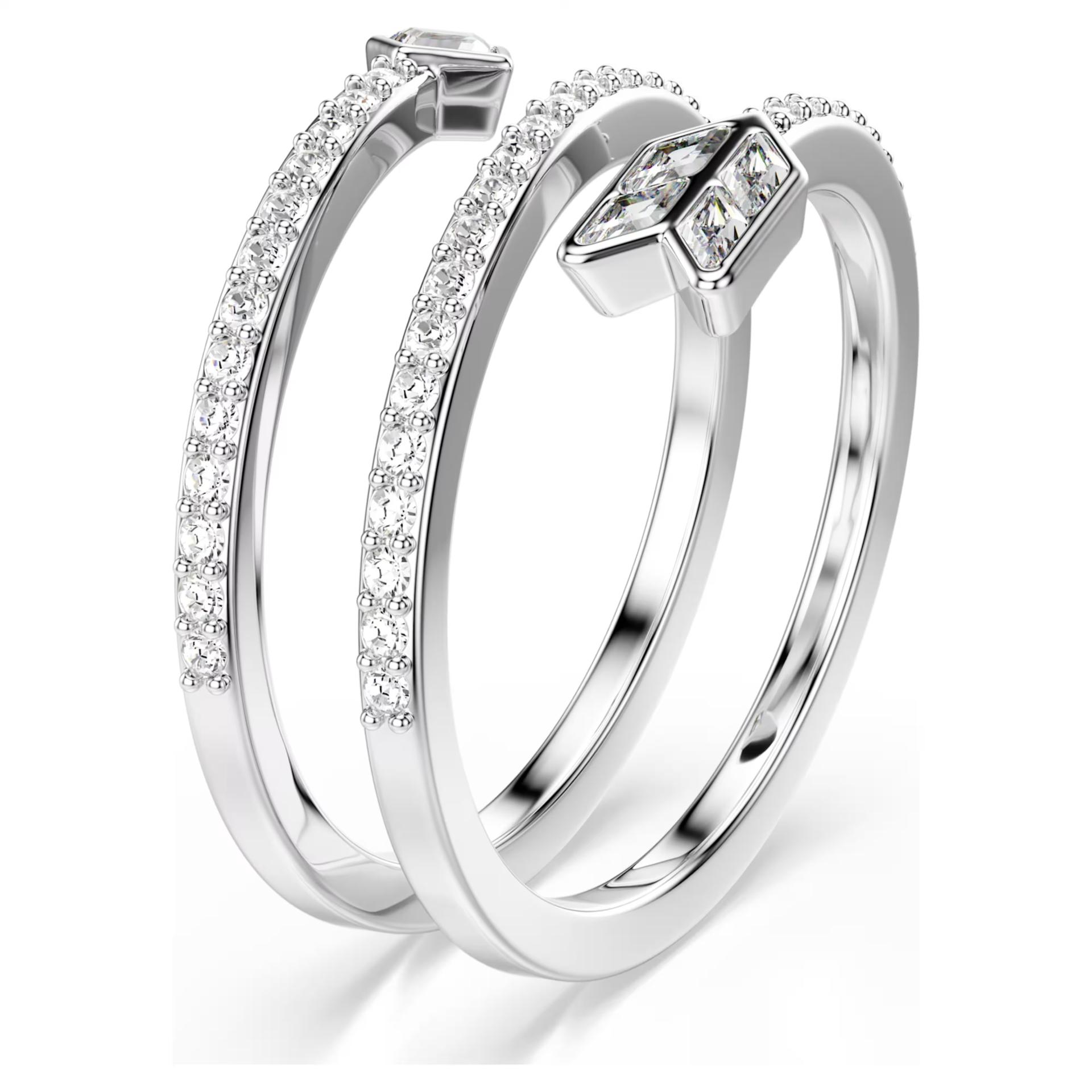 Swarovski Idyllia: Amorova strela u novom svetlu Odvažan i romantičan, ovaj prsten donosi modernu interpretaciju Amorove strele. Njegov jedinstveni spiralni dizajn, presvučen blistavim rodijumom i ukrašen kristalima, stvara vizuelni efekat čiste strasti i pokreta. Savršen je za one koji traže nakit koji spaja eleganciju sa snažnom simbolikom.