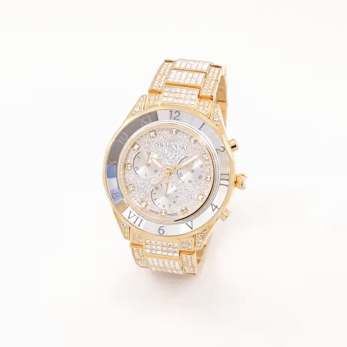 Swarovski Dextera Chronograph: Maksimalni sjaj i švajcarsko majstorstvo Ovaj spektakularni Dextera hronograf je prava oda Swarovski majstorstvu, dizajniran za one koji žele maksimalan sjaj. Kućište od 40 mm u zlatnom tonu ukrašeno je sa preko 240 kristala na brojčaniku i dodatnim kristalima na kućištu, dok metalna narukvica blista sa neverovatnih 492 kristala. Sa fluorescentnim kazaljkama i preciznim švajcarskim mehanizmom, ovaj sat odiše ekstravagancijom i radošću u svakom satu. Iako je u Dextera kolekciji, zbog veličine od 40 mm, ovo je odličan uniseks model.ima tri pomoćna brojčanika (minuti, sekunde, sati)