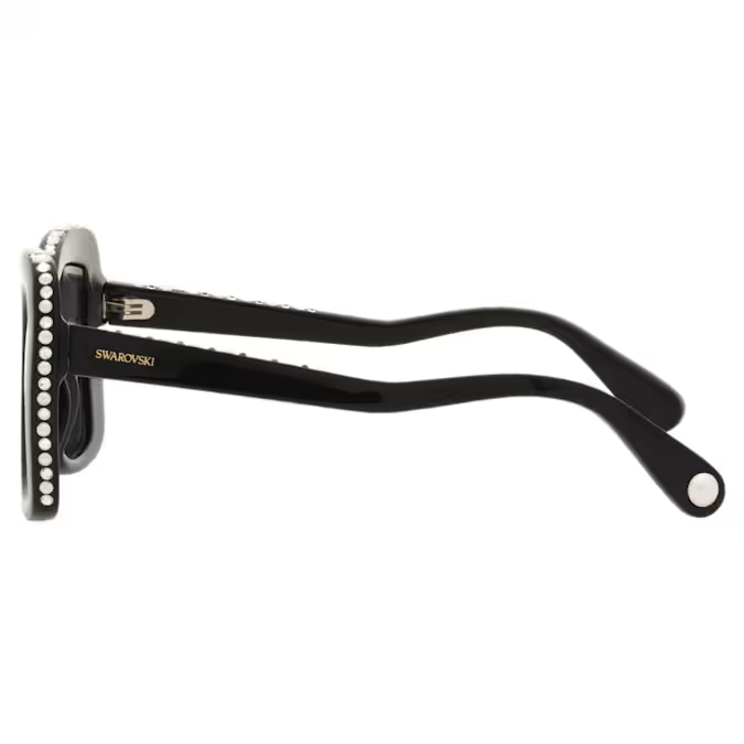 Svojom upečatljivom veličinom i luksuznom dekoracijom, ove Swarovski naočare za sunce unose dodir holivudskog glamura. Crni okviri u „butterfly“ obliku obogaćeni su naizmeničnim prozirnim kristalima i belim Swarovski Crystal Pearls, a upotpunjeni su tamnoljubičastim staklima za klasičnu sofisticiranost. Nosite ih u svakoj prilici kako biste ostavili snažan stilski utisak.