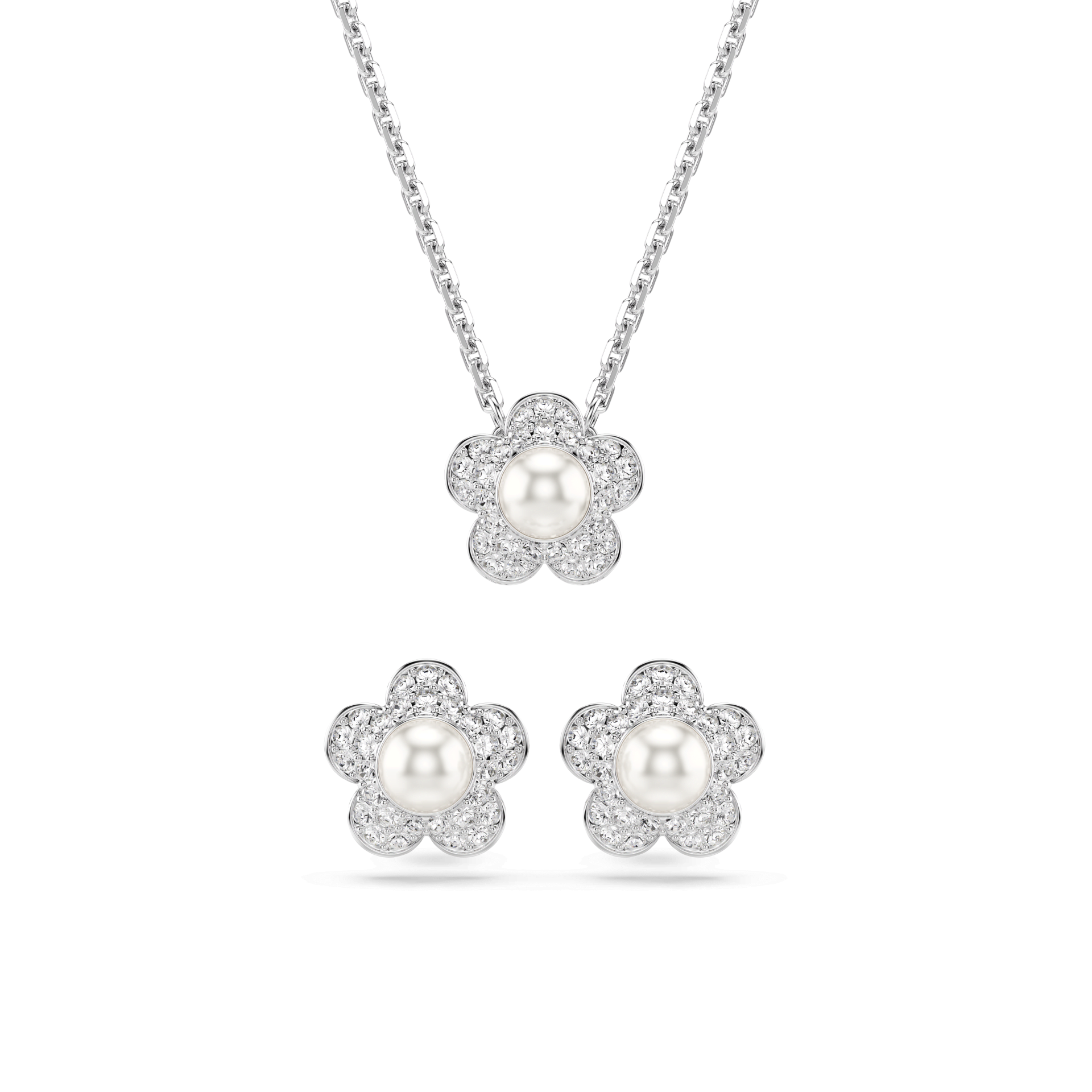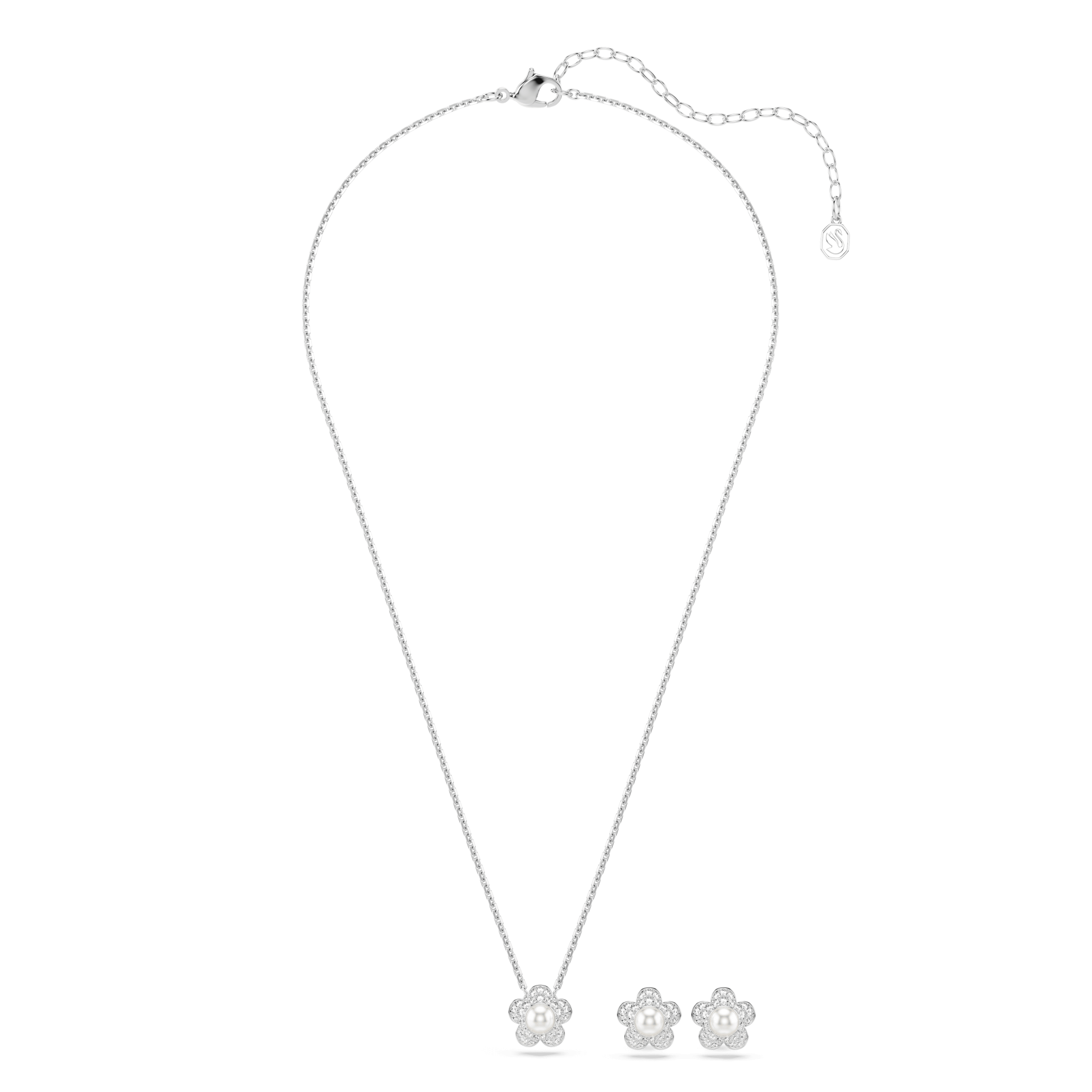 Ovaj elegantni Swarovski Angelic set ogrlice i minđuša odiše suptilnim luksuzom i prepoznatljivim kristalnim sjajem. Rhodium-plated dizajn krasi nežan motiv cveta, poznat i kao “Crystal Flower”, u čijem se centru nalazi velika kristalna perla koja dodatno naglašava sofisticiran izgled svakog komada.Harmonija blistavih kristala i klasične elegancije čini ovaj set savršenim izborom za posebne prilike, ali i za trenutke kada želite da svom stilu dodate diskretan, ali upečatljiv sjaj. Idealan je kao poklon ili kao bezvremenski dodatak kolekciji Swarovski nakita.