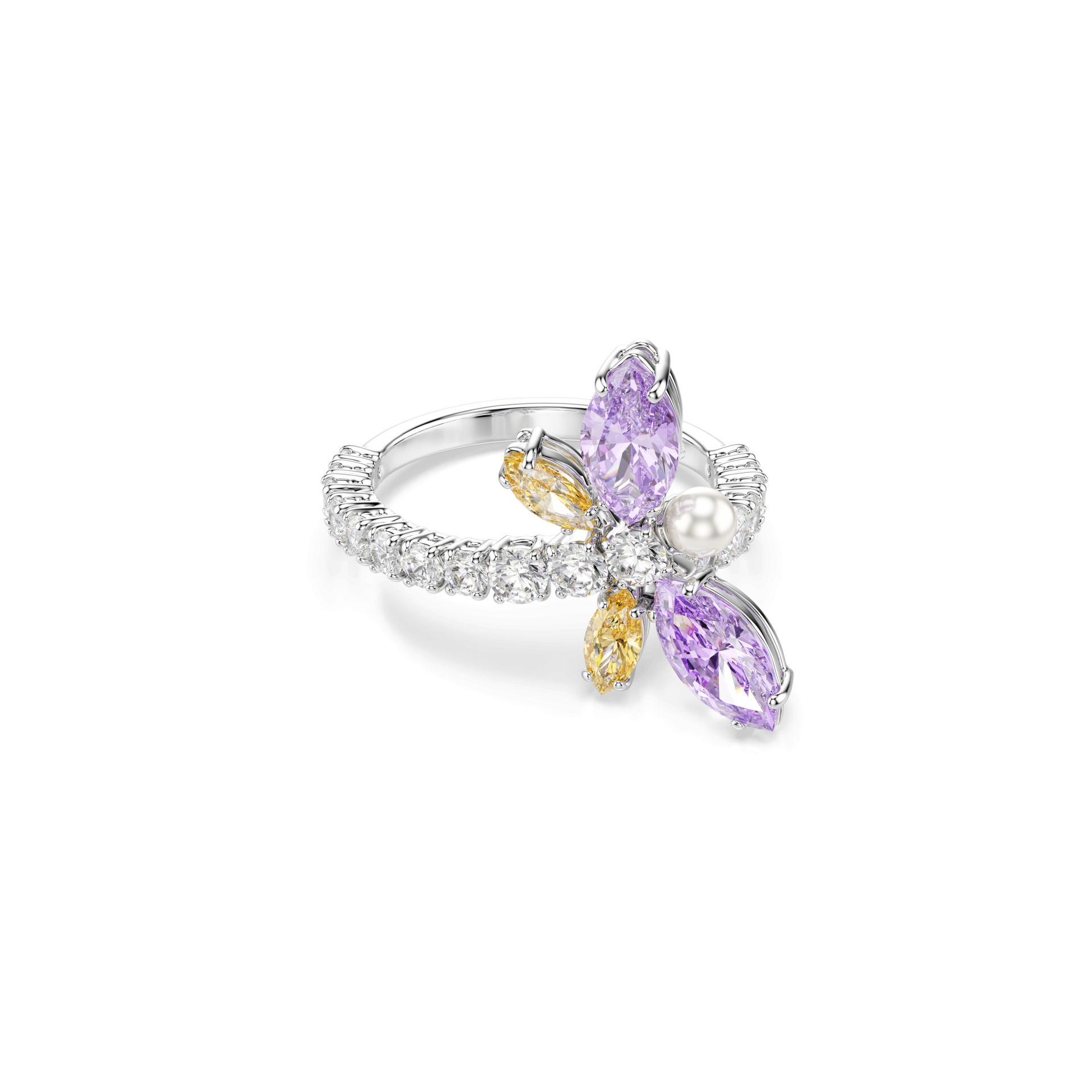 Kreativnost dobija krila u ovom otvorenom prstenu u obliku vilinog konjica. Rodijumom presvučena traka ukrašena je prozirnim Swarovski Zirconia kamenčićima i ima jednu Swarovski Crystal Pearl bisernu kuglicu postavljenu na mestu glave. Za pastelnu notu radosti, krila vilinog konjica otkrivaju nijanse ružičaste i ljubičaste, stvarajući živopisan komad nakita koji simbolizuje ličnu transformaciju.