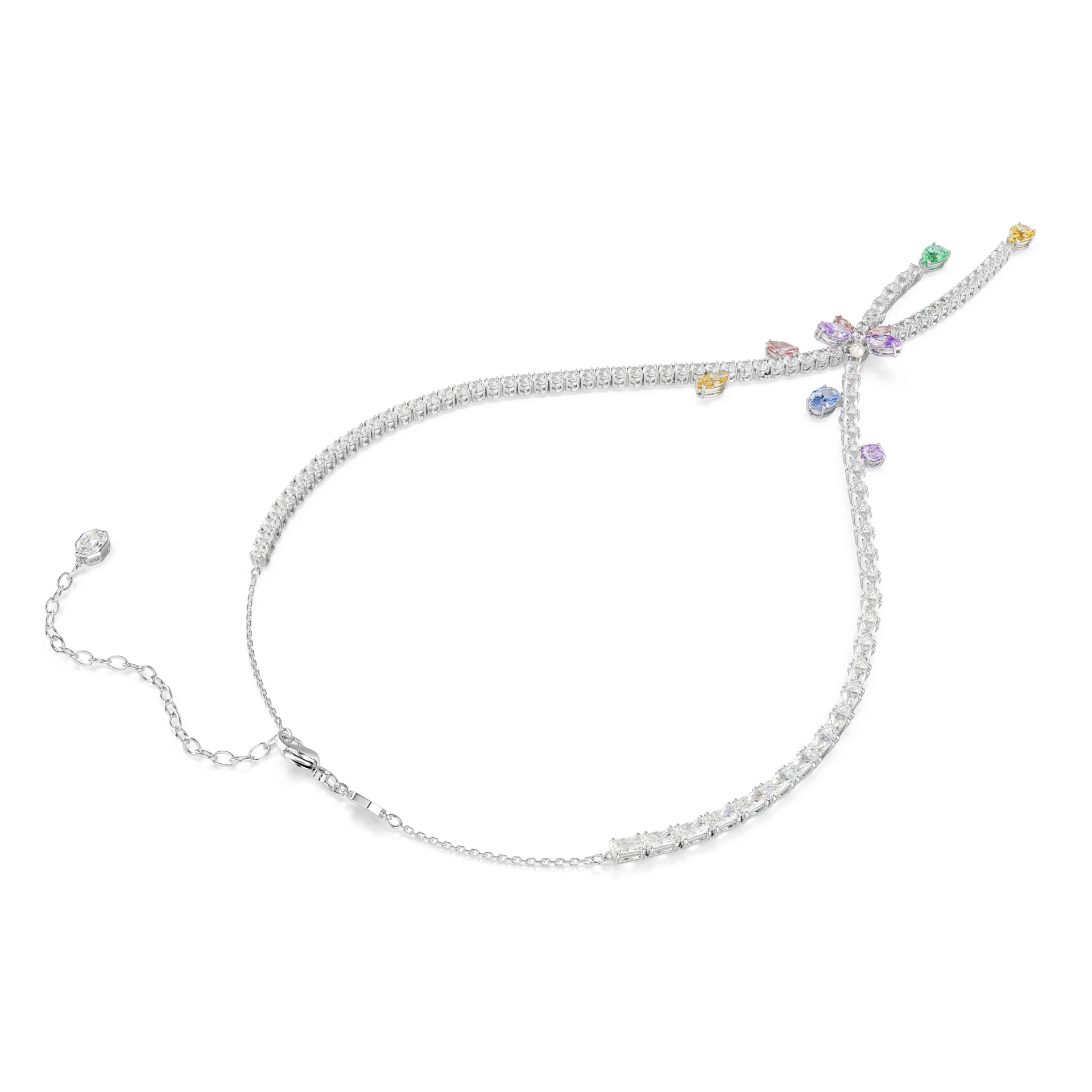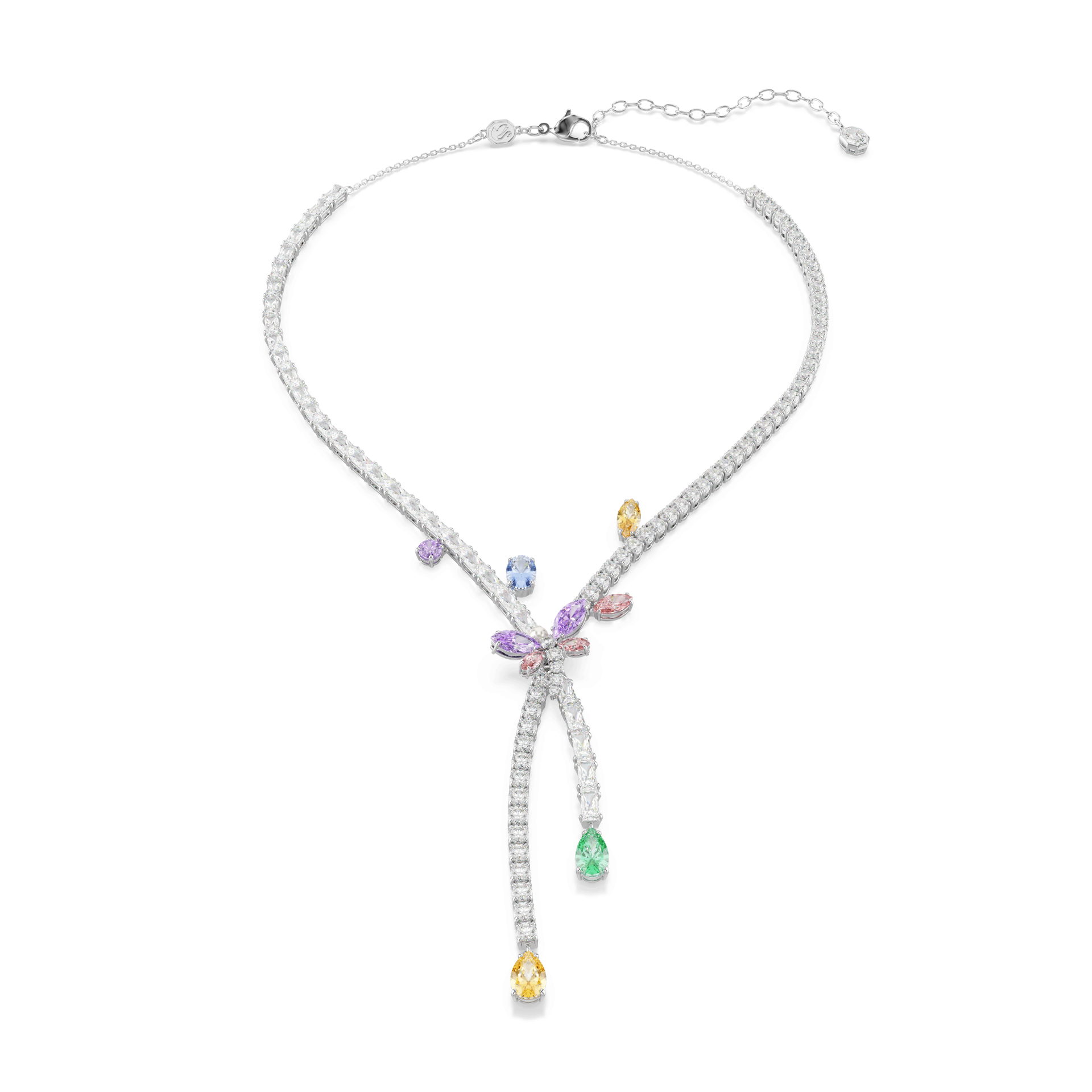 Kreirana sa maštom i dozom misteriozne elegancije, ova ogrlica sa ukrštenim dizajnom donosi mnoštvo iznenađenja. Ogrlica sa rodijumskom završnom obradom ukrašena je prozirnim Swarovski Zirconia u okruglom i baguette rezu, dok Swarovski Zirconia u pastelnim bojama unose razigranu kreativnost u ovaj komad nakita. U središtu se nalazi motiv vilinog konjica u ružičastim i ljubičastim nijansama, koji ogrlici daje simboliku transformacije i posebnu čar.