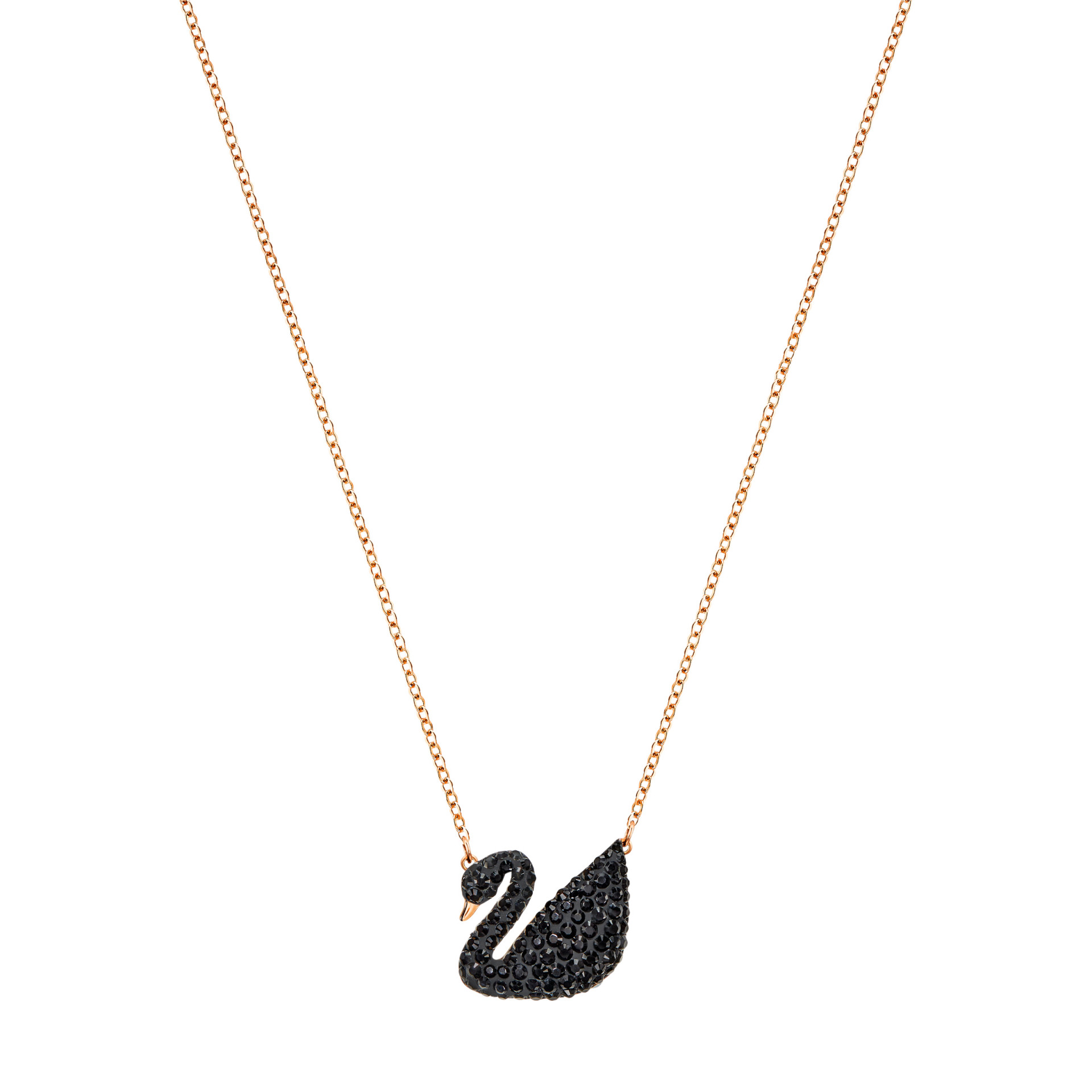 Savremena interpretacija kultnog komada, ovaj privezak verno dočarava gracioznost i eleganciju labuda brenda Swarovski. Izrađen je od metala sa završnom obradom u tonu ružičastog zlata i ukrašen crnim kristalima u pavé tehnici. Idealan je za dodavanje suptilnog sjaja svakoj odevnoj kombinaciji.