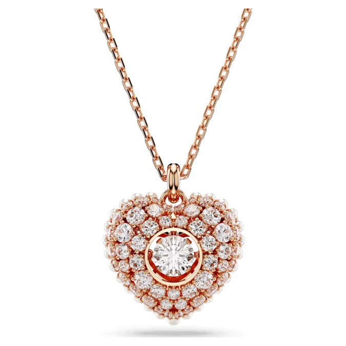 Dizajn sa prevlakom u tonu roze-zlata izrađen je u formi kaveza ("cage design") kako bi se postigao maksimalan volumen i trodimenzionalnost. Ivice srca krase delikatni beli Crystal Pearls, dok je unutrašnjost ispunjena prozirnim cirkonima postavljenim čuvenom chatonnage tehnikom. U samom centru, okrugli Swarovski Zirconia "pleše" pri svakom vašem pokretu, hvatajući svetlost iz svih uglova.Možete ga nositi samostalno kao centralni komad ili ga kombinovati sa minđušama iz Idyllia kolekcije za postizanje maksimalne elegancije.