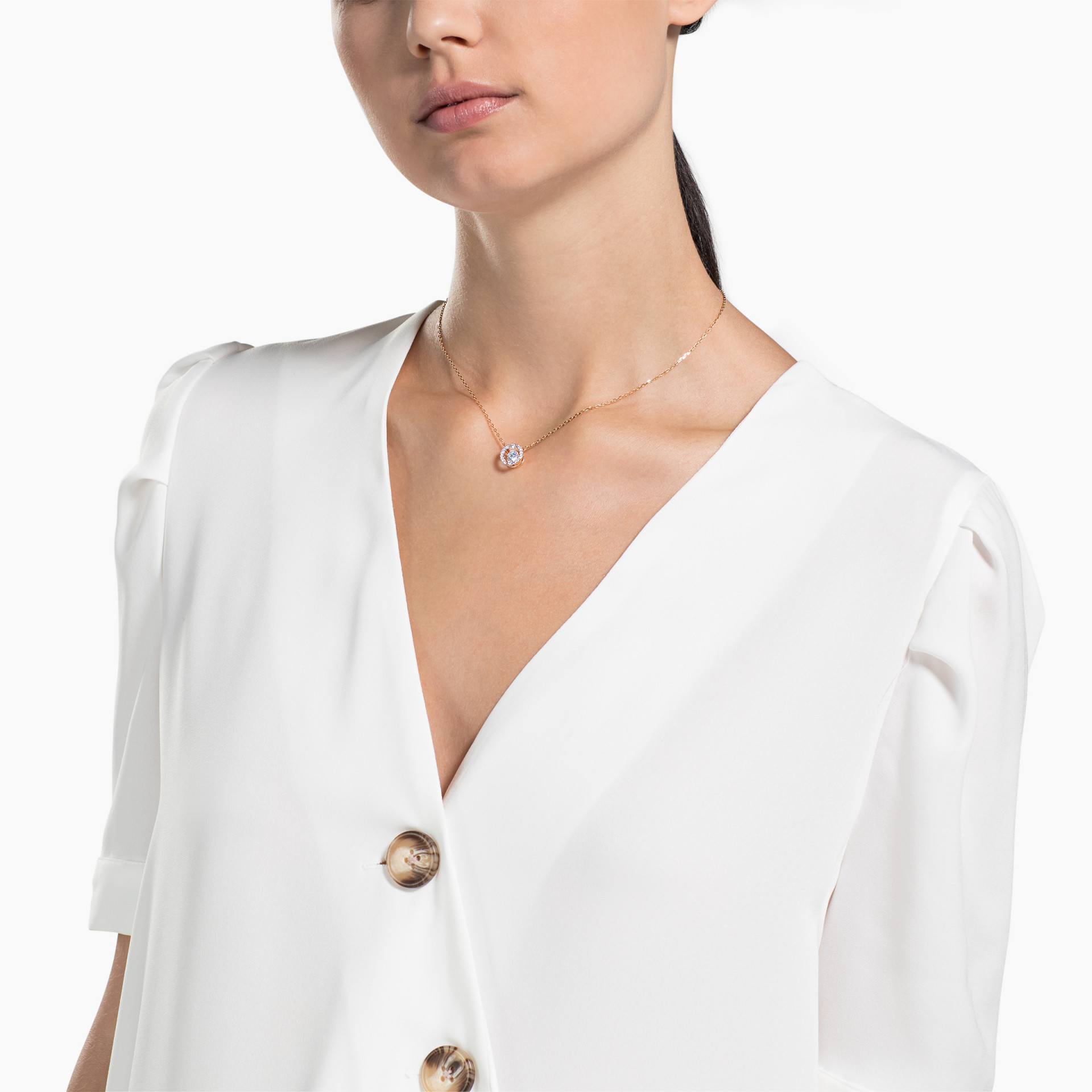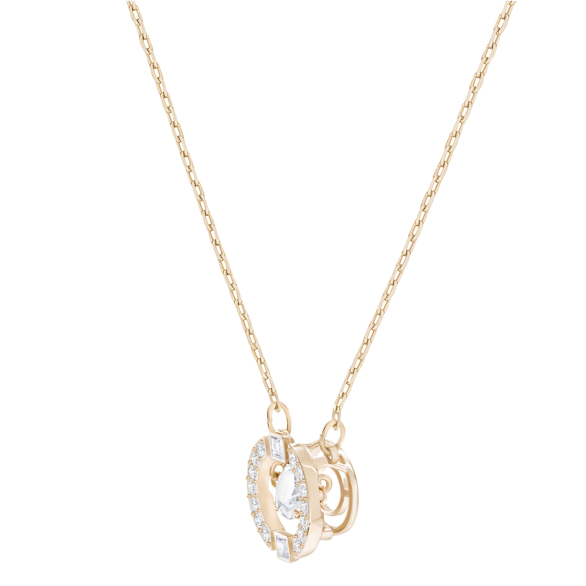 Uz novi koncept dizajna „plešućeg kristala“, ova ogrlica sa pozlatom u nijansi ružičastog zlata predstavlja okrugli kamen koji lebdi unutar 3D kaveza sa kristalnim pavéom. Kao neophodan dodatak svakoj kutiji za nakit, ona će vašem dnevnom stilu pružiti razigrani sjaj.