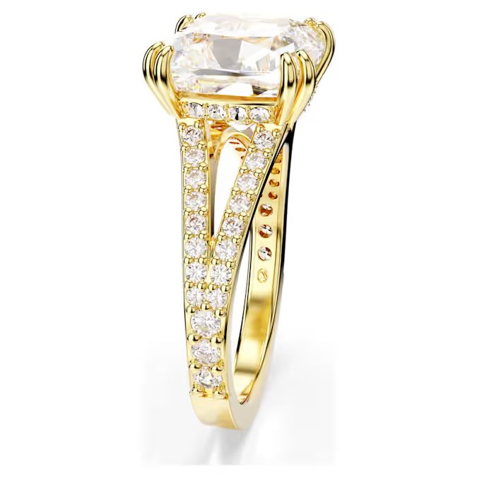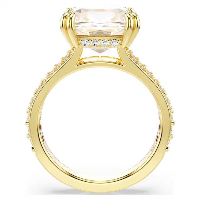 Ovaj spektakularni koktel prsten stvoren je za reflektore. Postižući savršen balans između dramatičnosti i sofisticiranosti, krasi ga izuzetna Swarovski Zirconia u kvadratnom kroju, postavljena u dvostruki držač, uz galeriju ukrašenu pavé detaljima i traku u zlatnom tonu.