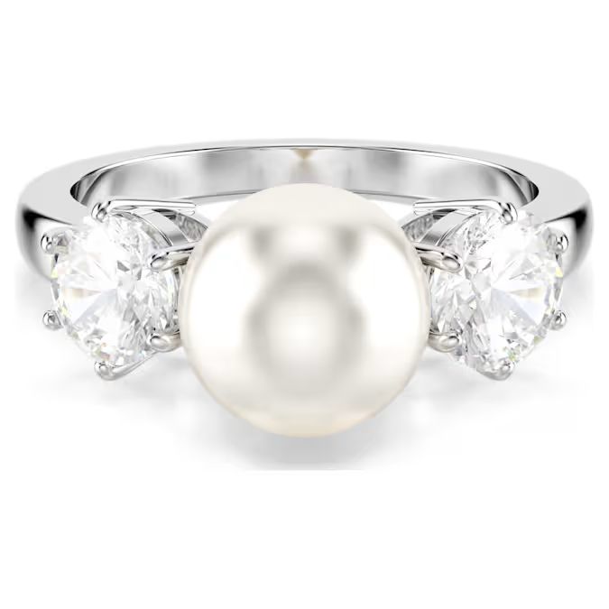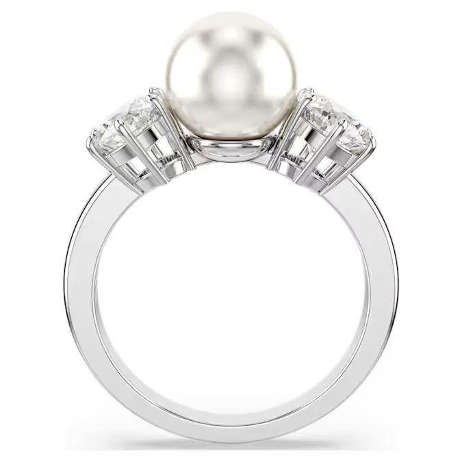 Ovaj sofisticirani Matrix koktel prsten donosi moderan zaokret klasičnoj silueti. Dizajn presvučen rodijumom ističe bela Swarovski Crystal Pearl u centru, sa Swarovski Zirconia kristalima postavljenim u držače sa obe strane. Luksuzan komad koji pruža trenutnu eleganciju.
