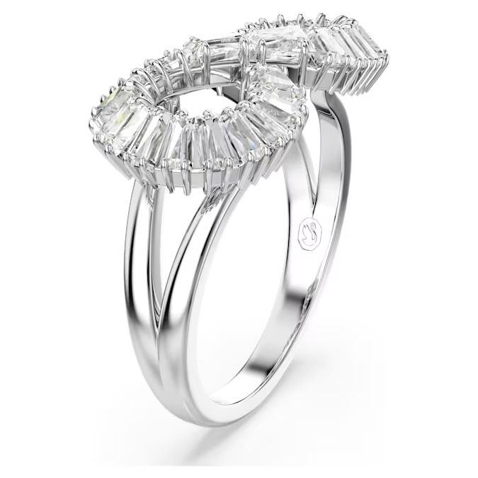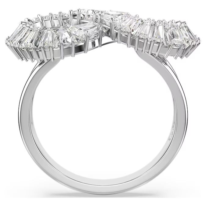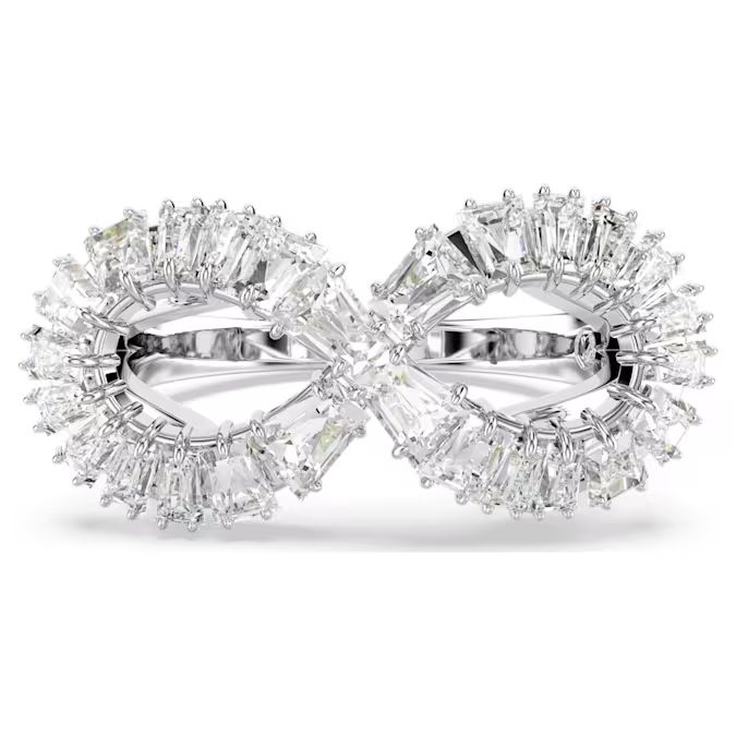 Bezvremenski stil oživljava u ovom prstenu u obliku beskonačnosti. Nakit presvučen rhodijumom ima spiralni dizajn, blistavo ukrašen nizom providnih Swarovski kristala, pažljivo postavljenih za neverovatnu detaljnost. Ovaj očaravajući i hipnotišući prsten istovremeno je simboličan i prelep.