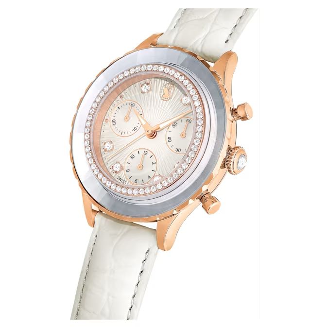 Ova selekcija donosi najbolje od Swarovski sveta – od romantičnih cvetnih motiva Idyllia kolekcije do preciznog švajcarskog inženjeringa u Dextera i Octea satovima. Dizajnirana za ženu koja želi da zrači radošću i elegancijom, bilo da je u pitanju svakodnevni stil ili najglamuroznija prilika.Za besprekoran online stil, uparite Octea Ivory sat sa Idyllia biserima. Ova kombinacija krem tonova i roze zlata odiše luksuzom koji je istovremeno topao i pristupačan.Octea Chrono poseduju funkciju štoperice sa tri dodatna podbrojčanika, idealno za one koji spajaju sportski duh i luksuz.