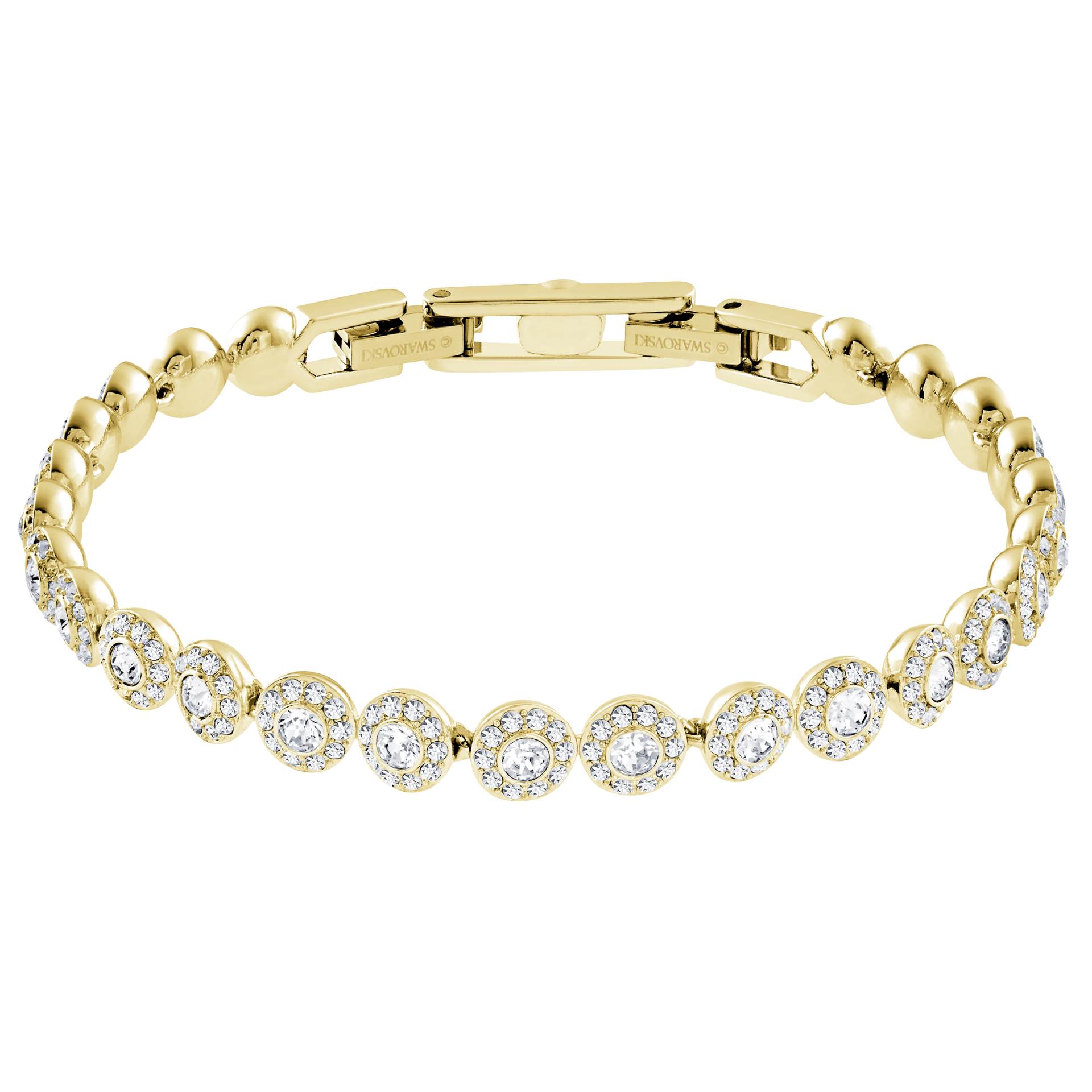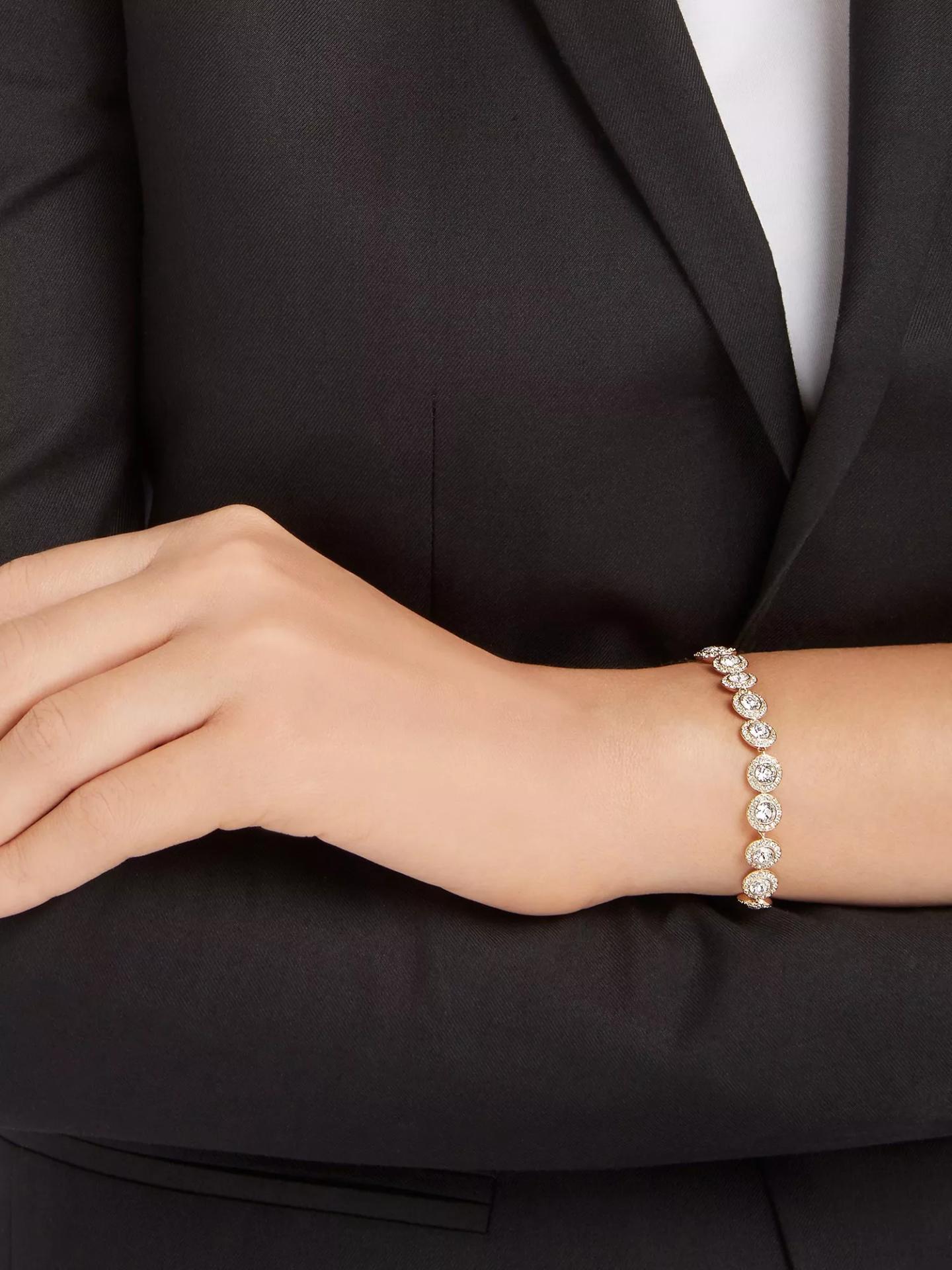 Čista, vanvremenska sofisticiranost. Ova Una Angelic narukvica sa pozlatom u zlatnom tonu sadrži niz okruglih prozirnih kristala, od kojih je svaki uokviren svetlucavim kristalnim pavé-om. Savršeno se kombinuje sa drugim komadima iz Una Angelic porodice i predstavlja predivan izbor za poklon koji ostavlja bez daha.
