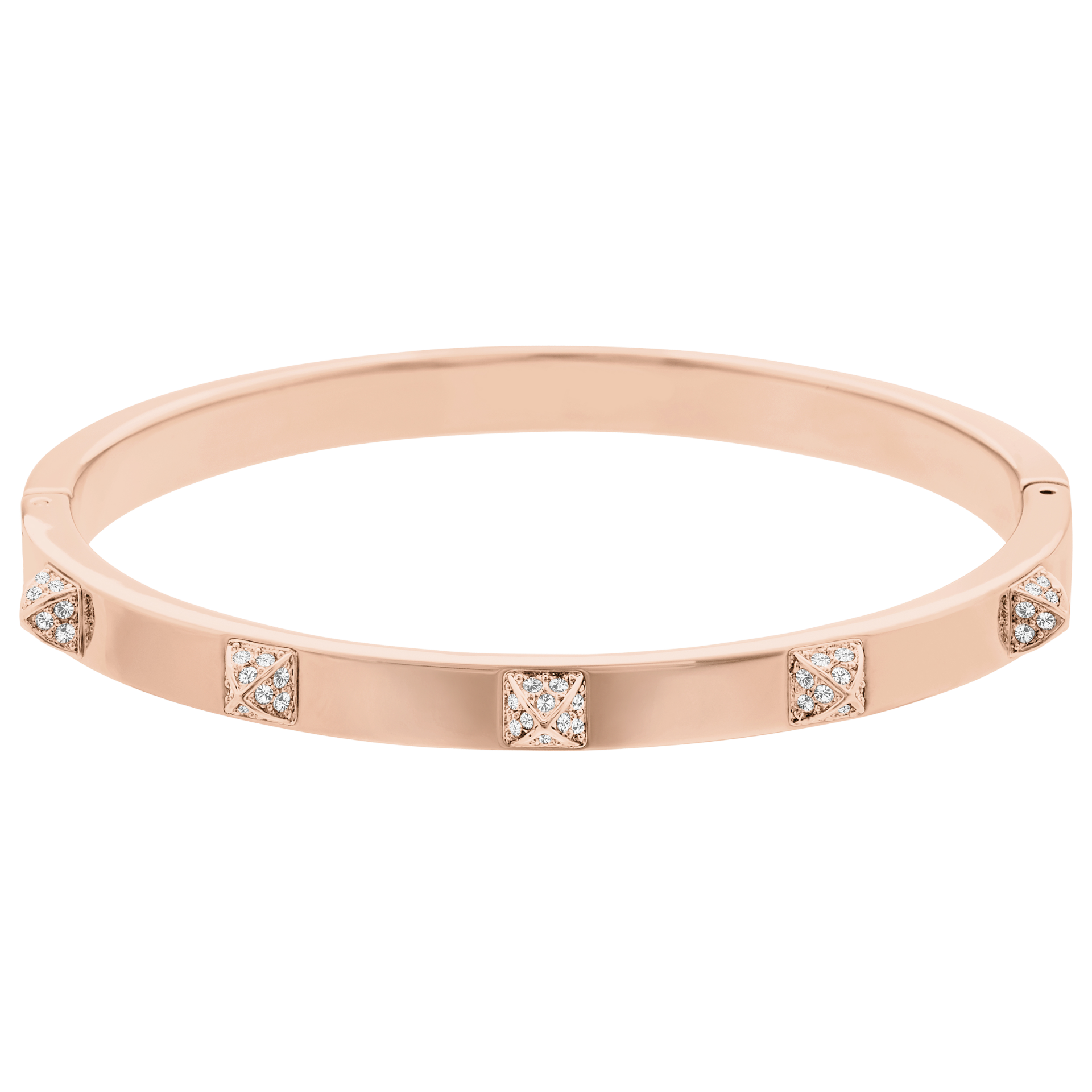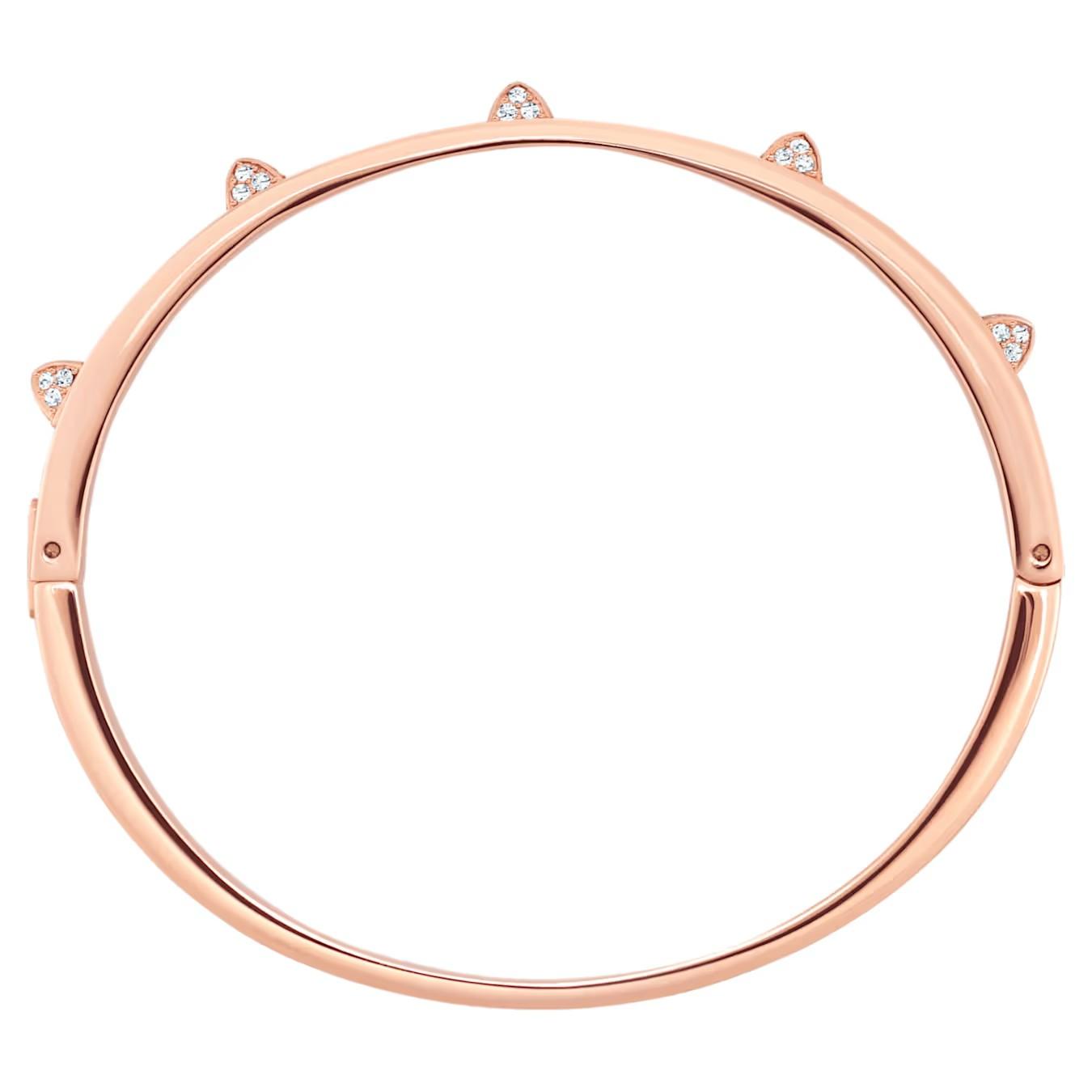 Idealan izbor za ljubitelje mode. Ova narukvica u rose gold tonu prati trend tankih alki i spike detalja. Ukrašena prozirnim pavé kristalima, njena elegantna i moderna silueta lako se kombinuje sa drugim alkamа i narukvicama za savremen, slojevit izgled.