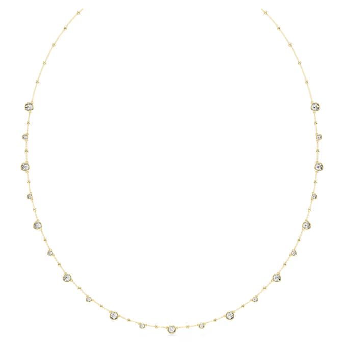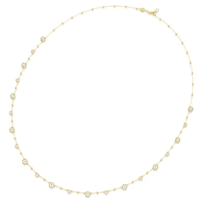 Ovaj dugi komad nakita savršen je za kombinovanje u slojevima i unosi dašak sofisticiranosti u vaš stil. Dizajn uključuje lanac presvučen zlatnim tonom, naglašen nizom sjajnih metalnih kapljica i blistavih kristala u okruglom sečenju sa podignutim bezelom. Jedan Swarovski kristal smešten je u izduženom delu, za dodatni luksuz. Jednostavan i brz način da podignete svaki svakodnevni izgled.